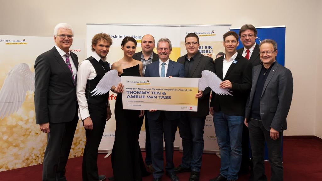 Einen ganz besonderen Preis erhielt daher die größte Blutspender-Gruppe des Landes. Die Sieger-Gruppe, die Freiwillige Feuerwehr aus Kottingneusiedl, die mit 65 Blutspendern ein beeindruckendes Zeichen der Solidarität setzte. Die gesamte Gruppe erlebte im Anschluss der Siegerehrung das Magier-Duo Thommy Ten und Amélie van Tass. Das Magier-Pärchen präsentiert nach ihren grandiosen Auftritten bei „America´s got Talent“, mit über 16 Millionen Zusehern, ihr Programm „Einfach zauberhaft“ auch in St. Pölten.